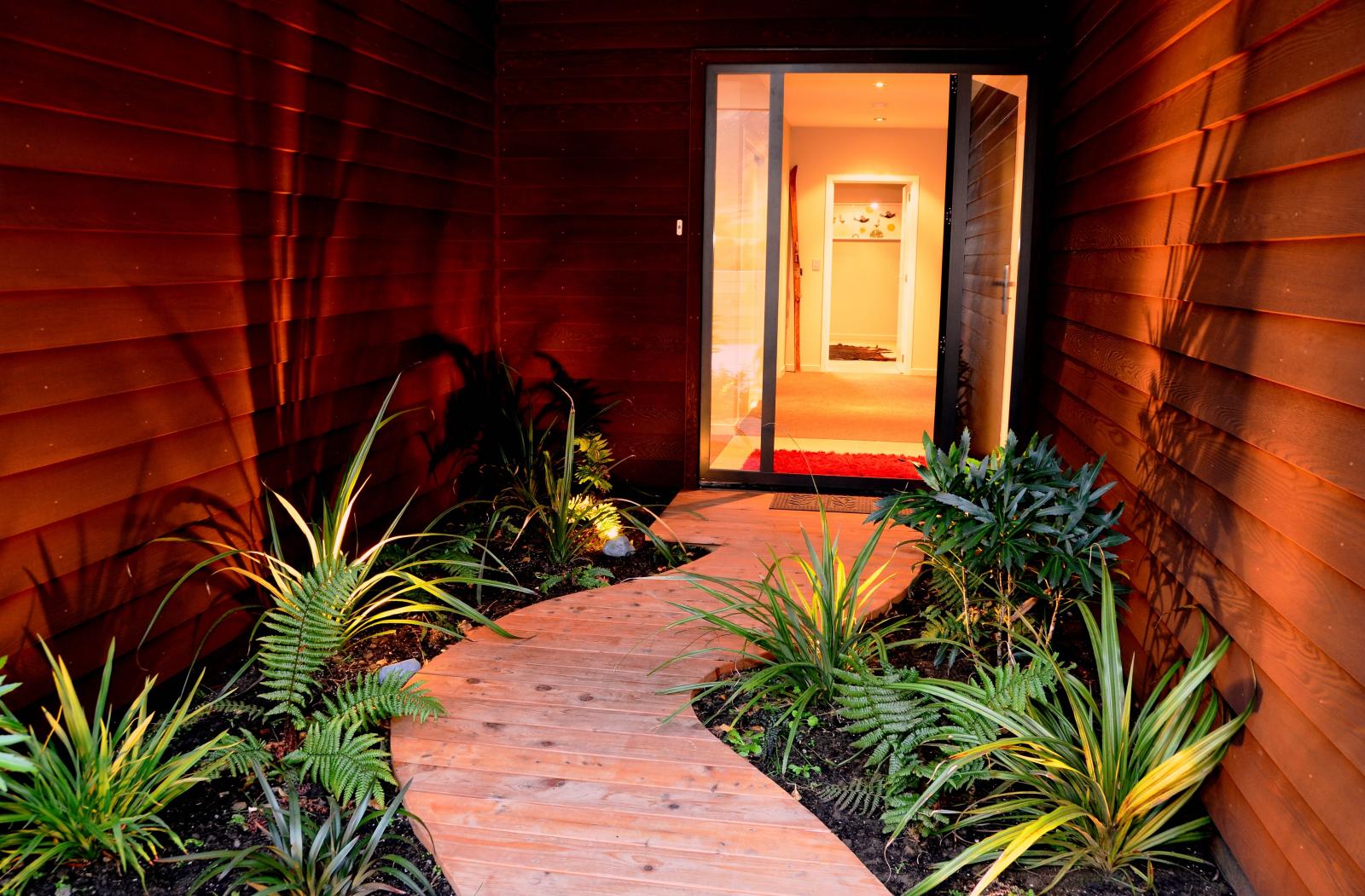 We delivered on that and more, beginning with a lush, eye-catching entrance. Four years on from the build, it's still attracting comments and is regularly posted on social media. It's an extremely well-insulated house with practical under-tile heating that responds to changes in temperature easily rather than slower-to-heat underfloor heating. The seamless flow from indoors to outdoors is made for entertaining large groups and enjoying the natural surroundings.